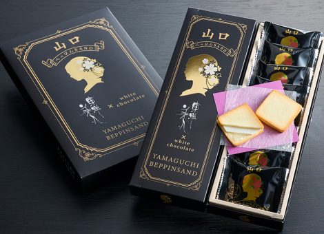 山口べっぴんSAND 8枚入993円(税込)14枚入1,738円(税込) 山口県の銘酒「東洋美人壱番纏純米大吟醸」を原料の一部に使用した香り華やぐラングドシャ。