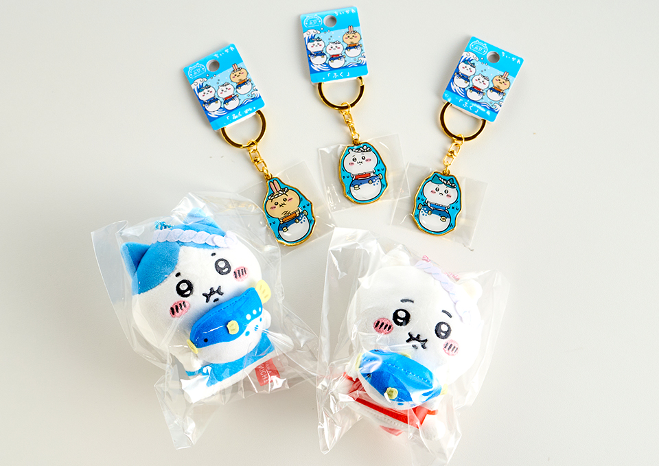 ちいかわぬいぐるみ 1,540円 ハチワレぬいぐるみ 1,540円 キーホルダー 各495円 全て税込価格です。