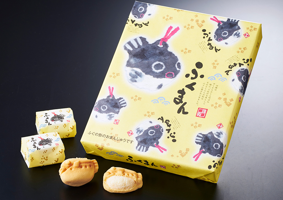 ふくまん 12個入918円(税込)20個入1,490円(税込) 下関の名物「ふく」を形どった長年愛されているおまんじゅう。