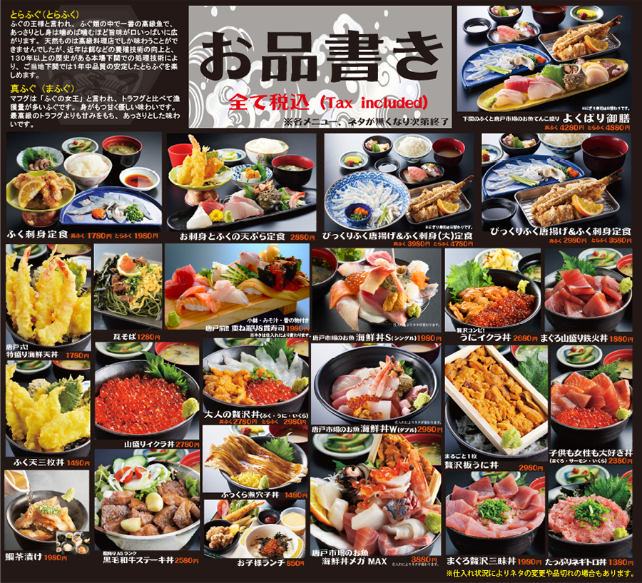 ふぐ料理・和定食・海鮮丼各種